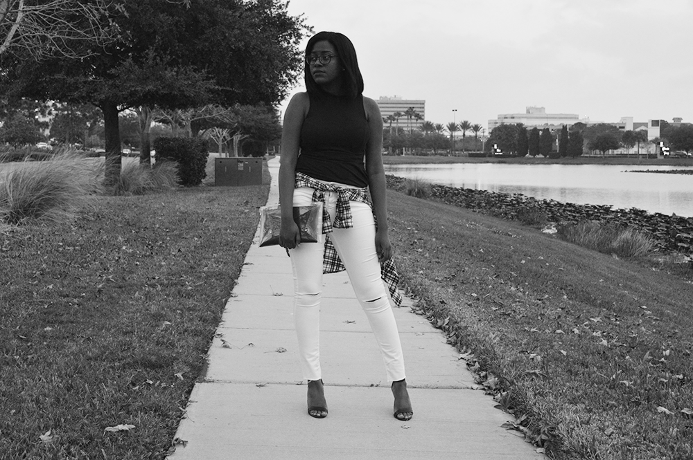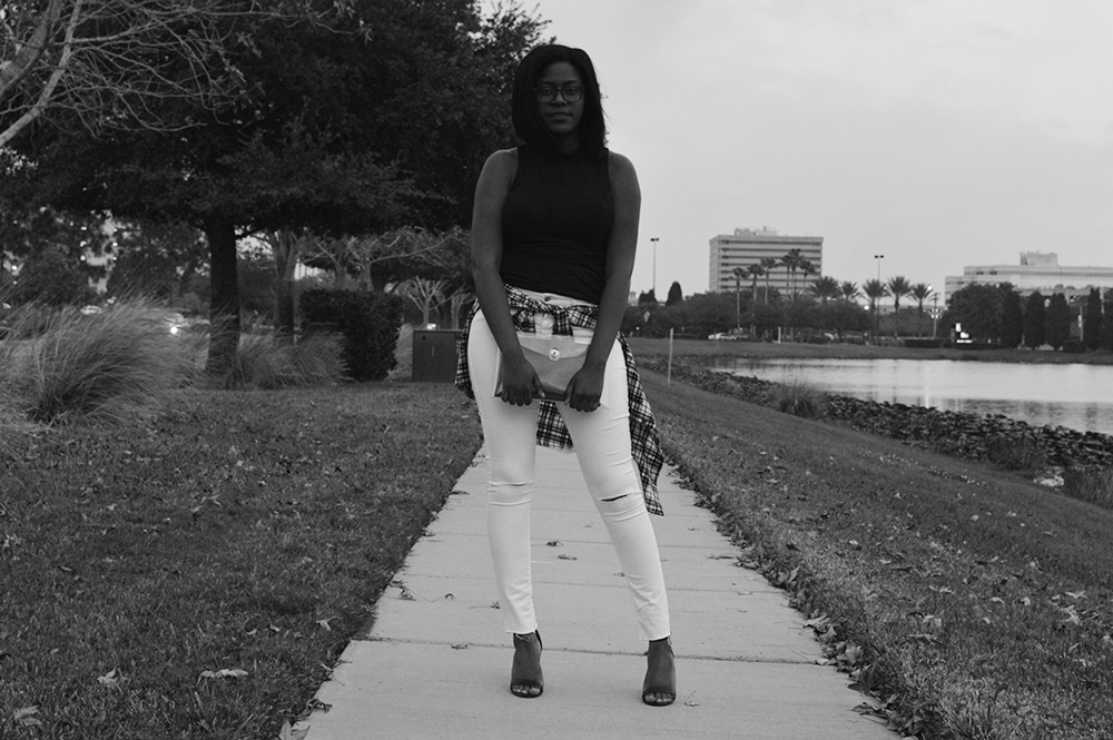 So I was heading out and decided to keep my outfit really simple and classic. One of my main mottos is that simplicity is key! I kept my outfit within a black and white color scheme which is one of my fave as well. When choosing this outfit I knew I wanted to have a top with a high collar so I got creative and my top is actually a dress! Crazy, I know lol. I got this dress for only $5 which is a steal because it was able to be transformed and is technically two pieces now. I am all for shirts tied around the waist so I added this aspect to keep the outfit casual even though I am wearing heels.