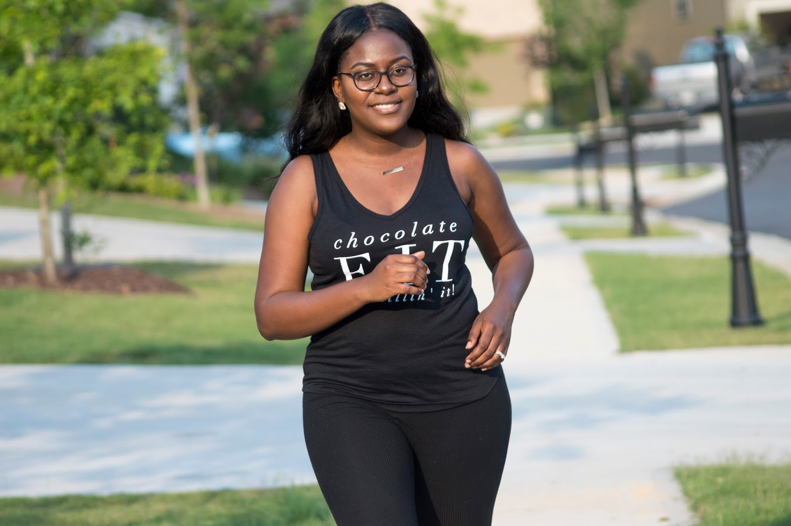 The thing about my relationship with fitness is that I usually have to feel motivated to really get up and work out. I knew the perfect way to start off would be to get some new gear, because who says you can’t be cute while exercising? The tee I’m rocking sold by Natural & Fit Designs is the bomb because not only does the saying on the shirt give me life but the fabric is very breathable, which is perfect for capturing sweat. I also really enjoyed sporting it during my evening work out because I truly love what the company stands for. Natural & Fit Designs was created to reflect the founder Tara’s feelings about black women, working out, natural hair, and much more.