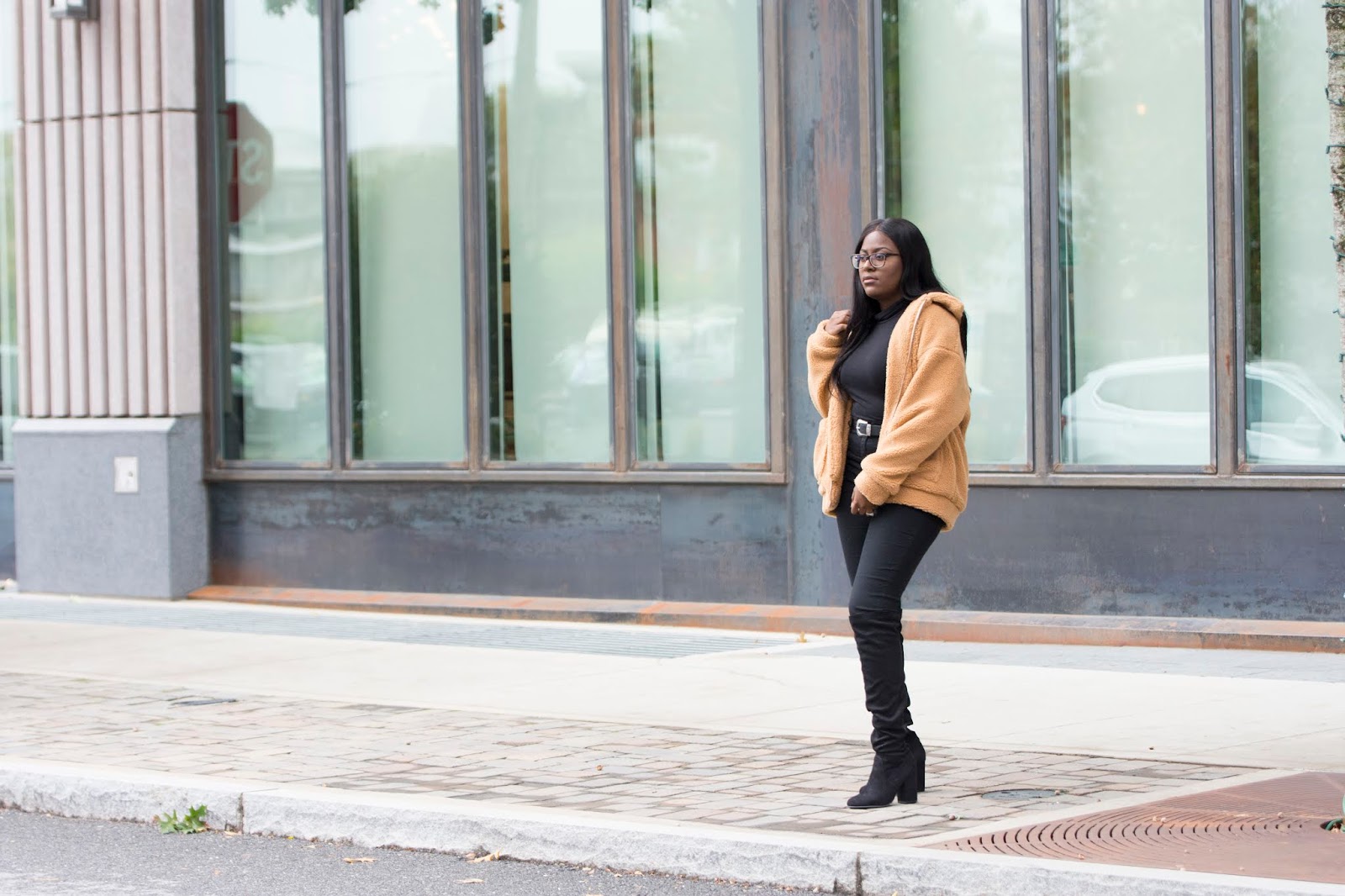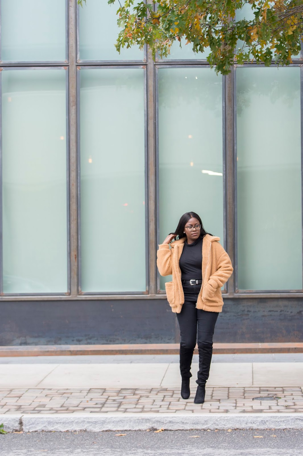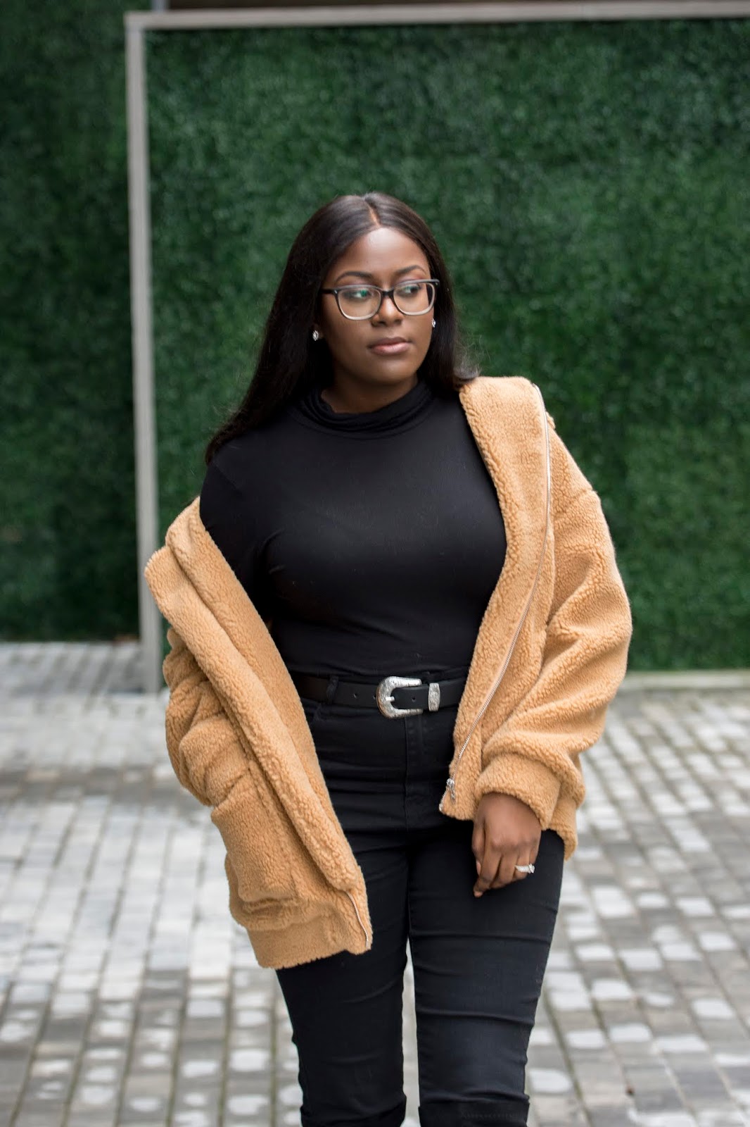 Teddy jacket/coats have been pretty popular the past year or so and because of this, they would always be sold out. I knew this year I had to get my hands on one and found this super cute version on SheIn. Not only is the quality super nice but I love how cozy and comfy it is. What’s really great about this jacket is that it is so easy to style! You can literally throw it on with a pair of jeans and a white t-shirt or even with a pair of trousers and you’ll be good to go. I chose to wear it with an all black look because thats the vibe I was feeling but trust me you’ll be seeing more of this on the blog and my YouTube channel.